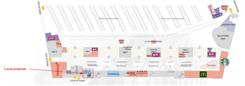 Activité autorisée sur l’emplacement : Equipement de la personne / Equipement de la maison / Beauté Santé / Optique / Téléphonie / Cadeau alimentaire / Pause gourmande (dans un strict respect du CPTA) Durée du contrat : 6 ans à compter de la prise d’effet du contrat de sous-occupation Date de mise à disposition prévisionnelle de l’emplacement : 01/01/2027 (sous condition de libération du local par l’enseigne en place)